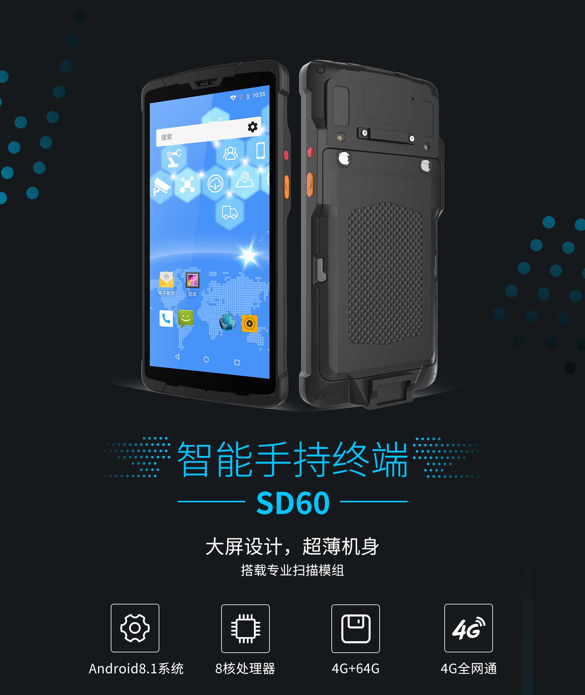 思必拓SD60全屏安卓手持終端SD60 基本參數(shù)處理器8核 2.0GHz操作系統(tǒng)Android 8.1存儲(chǔ)RAM:2GB或4GB ROM:16GB或64GB屏幕尺寸6.0寸,IPS高亮屏機(jī)器尺寸160*80*15.8mm重量300g攝像頭后置1300萬(wàn)自動(dòng)對(duì)焦攝像頭,高亮度LED閃光燈,前置500萬(wàn)定焦攝像頭音頻前置雙立體聲揚(yáng)聲器,音量90db±3db(測(cè)試距離10cm)傳感器地磁,加速,光感